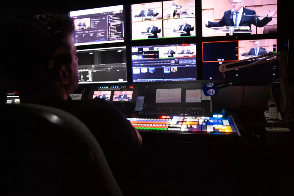 A transmissão dos cultos ao vivo com qualidade impecável é uma grande ferramenta para alcançar mais pessoas e levar a Palavra de Deus além das paredes do templo. Usamos tecnologia de última geração, garantindo qualidade impecável de som e imagem.